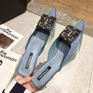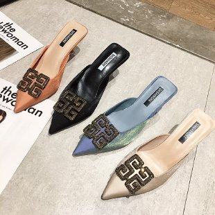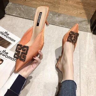 Vous êtes ici: Maison » Des produits » Sandales d'été » Sandales des femmes » Chaussures d'été bon marché pour femmes, demi-pantoufles à bout pointu, sandales à talons aiguilles pour dames