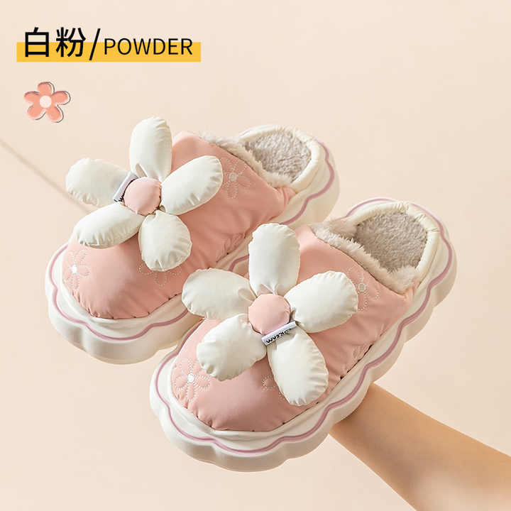 Chaussures d'intérieur imperméables pour femmes, pantoufles chaudes en peluche Eva à semelle épaisse, hiver
