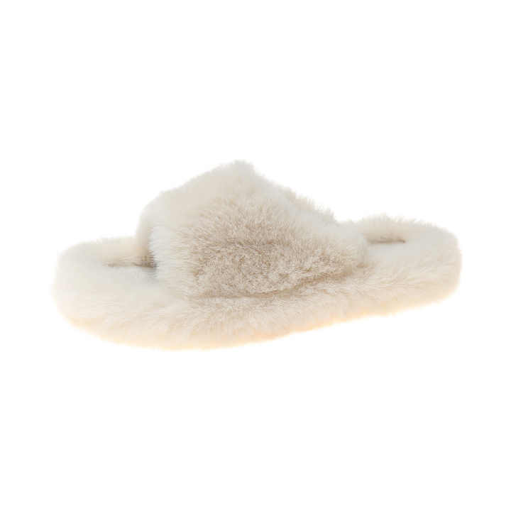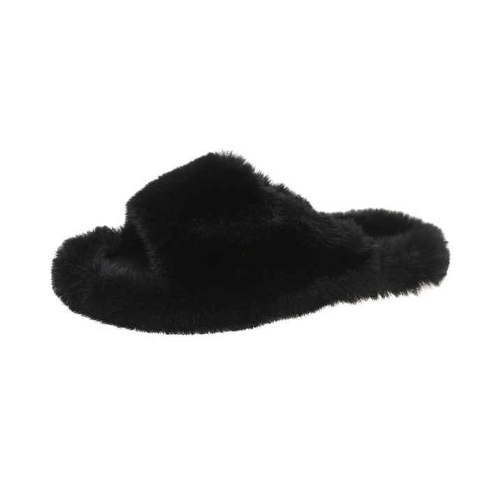 Chaussures plates pour femmes, diapositives en fourrure, peluche douce, coton, pantoufles d'intérieur et d'hiver pour la maison