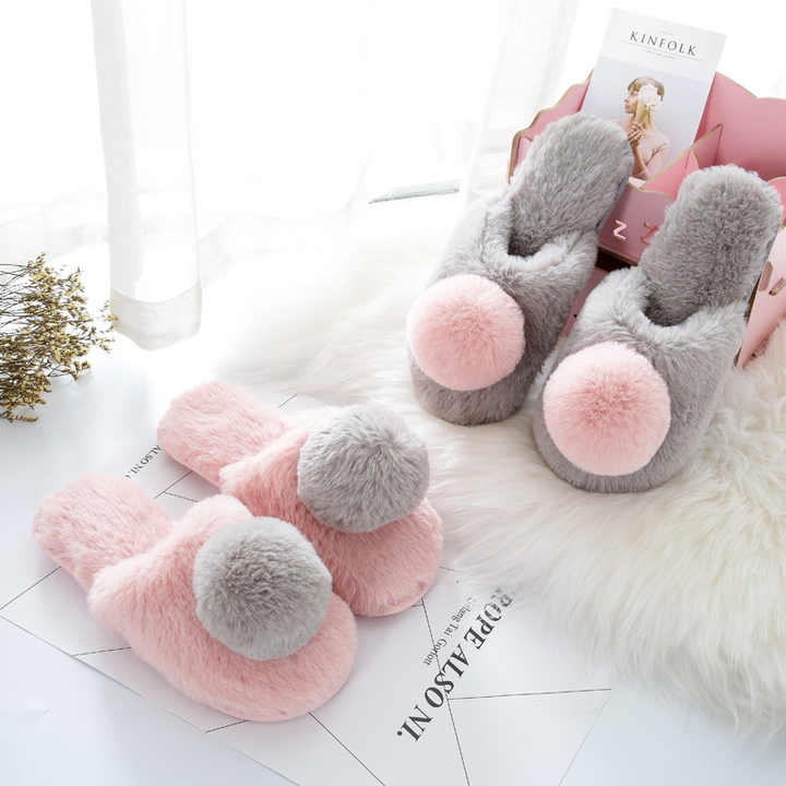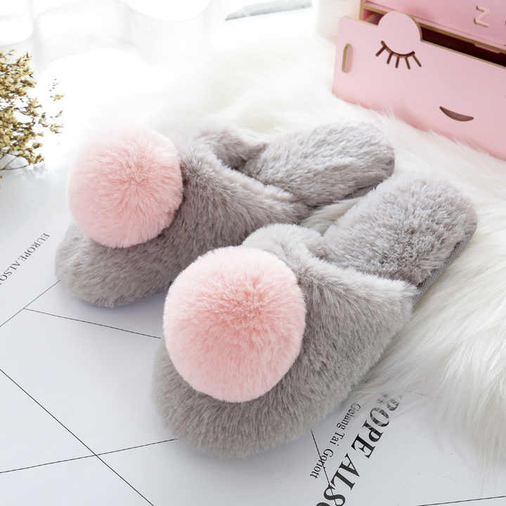 Femmes hiver pantoufles chaussures diapositives en peluche balle maison pantoufles dames intérieur maison fourrure chaude