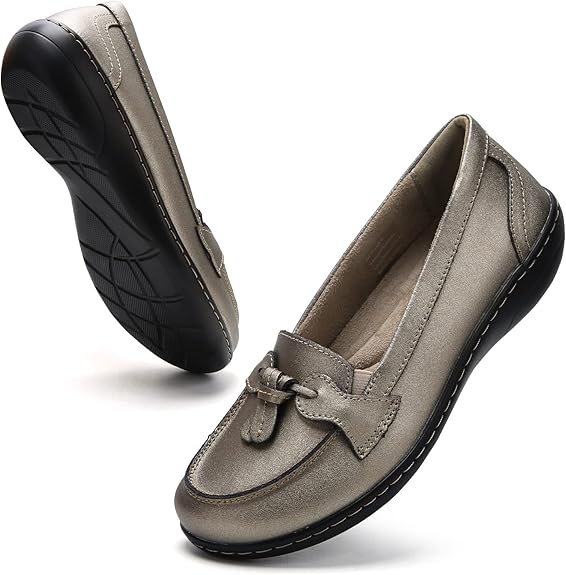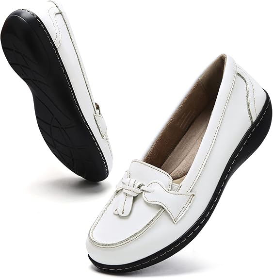MATÉRIAUX DE PRIMIER: Les mocassins pour les femmes confortables sont faits de véritables tiers en cuir divisé de luxe avec des coutures fines classiques. Doublure en cuir Cowskin et semelle intérieure en mousse à mémoire. Semelle en caoutchouc légère et flexible