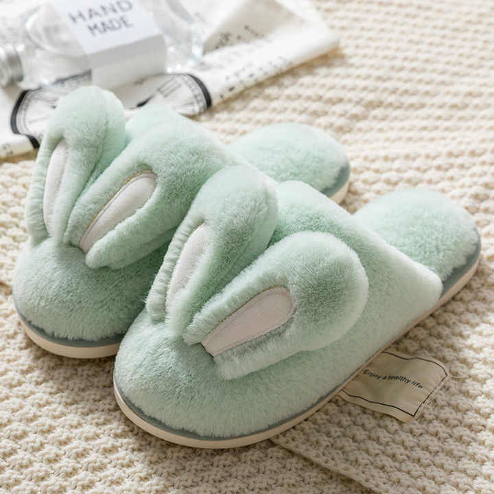 Nouveau femmes coton pantoufles femme mignon dessin animé lapin oreilles Couple en peluche mâle hiver maison chaussures