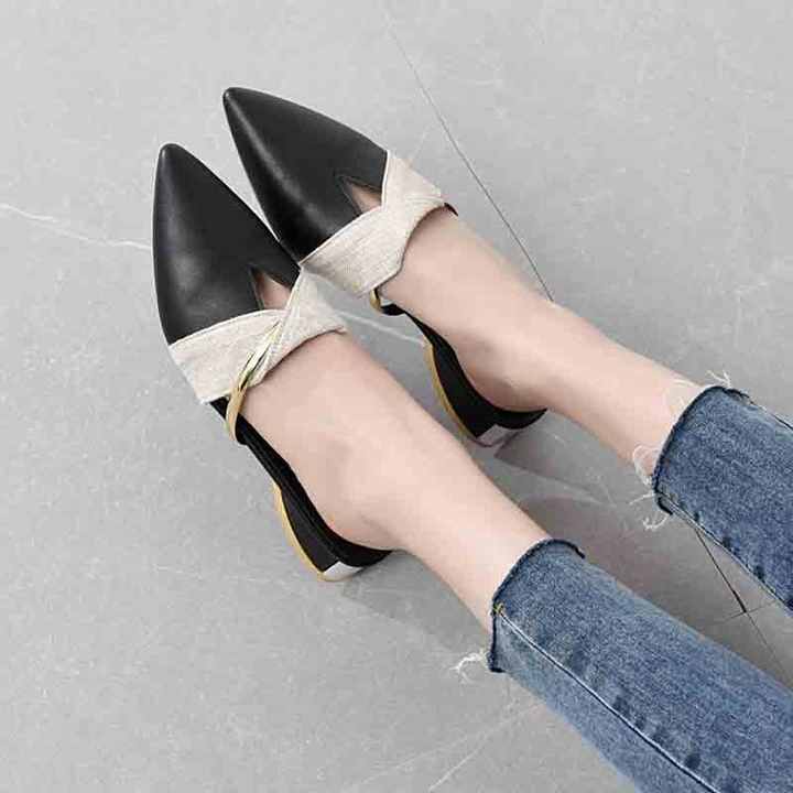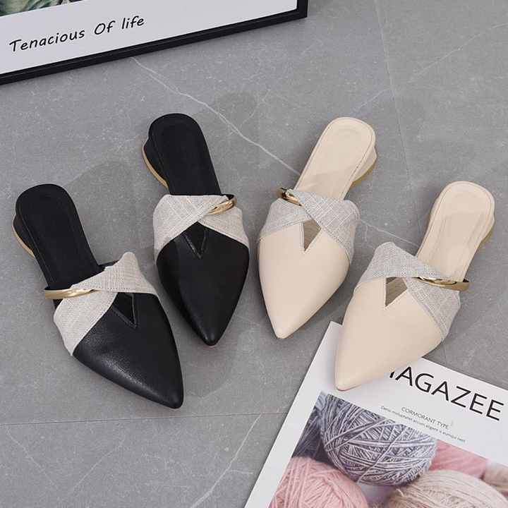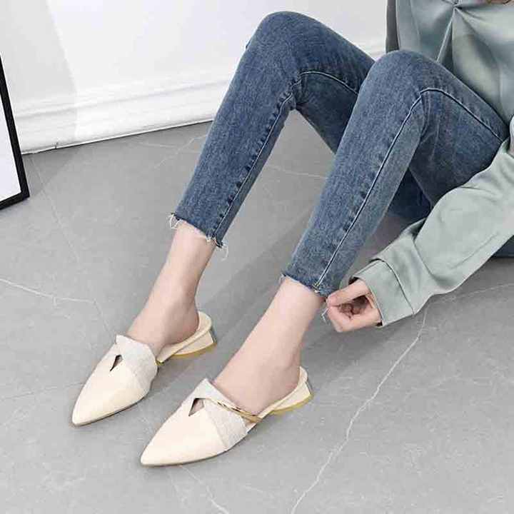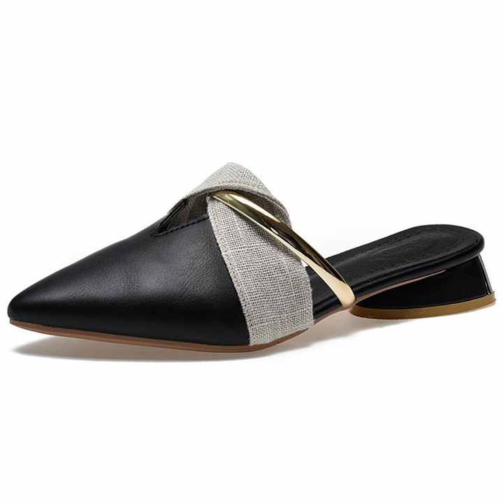 Vous êtes ici: Maison » Des produits » Sandales d'été » Sandales des femmes » Pantoufles Sexy à bout pointu pour femmes, Mules à talons bas, escarpins en cuir PU, diapositives décontractées d'été pour femmes