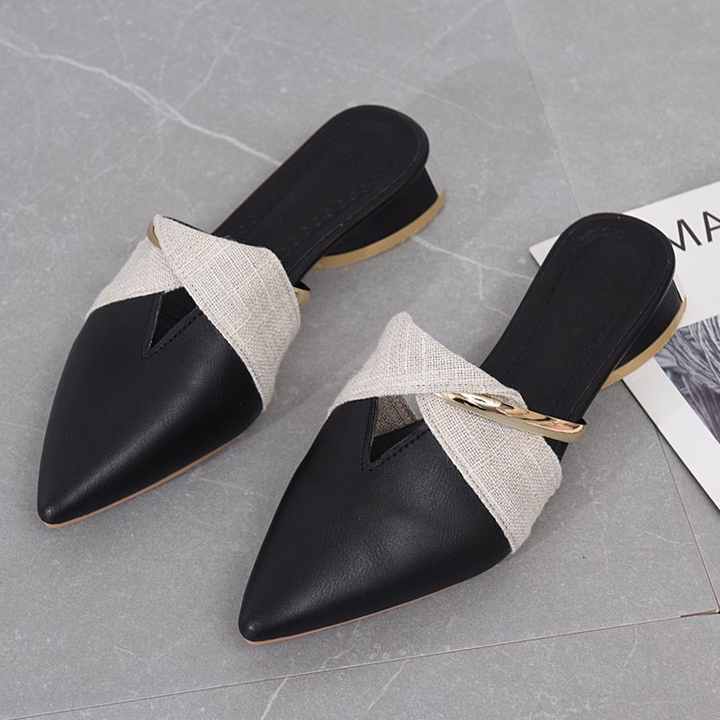 Pantoufles Sexy à bout pointu pour femmes, Mules à talons bas, escarpins en cuir PU, diapositives décontractées d'été pour femmes