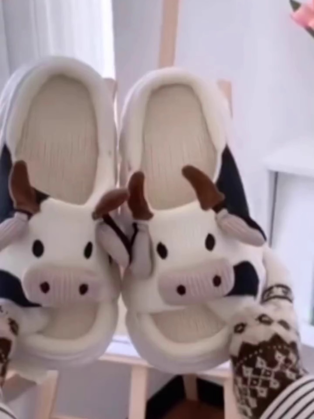 Pantoufles d'été en lin pelucheux pour femmes, mignonnes Kawaii, pantoufles de vache, d'animaux, de dessin animé, de maison de lait, chaussures amusantes