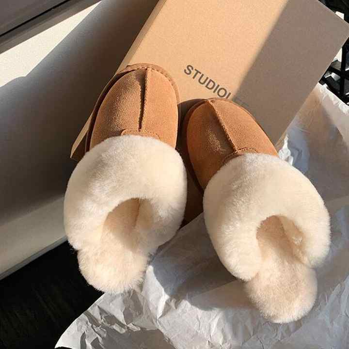 Vous êtes ici: Maison » Des produits » Slippers d'hiver » Bottes d'hiver » Pantoufles d'hiver en fourrure pour femmes, bottes chaudes à plateforme, courtes en peluche, chaussures de maison en coton, Mules en daim pour dames