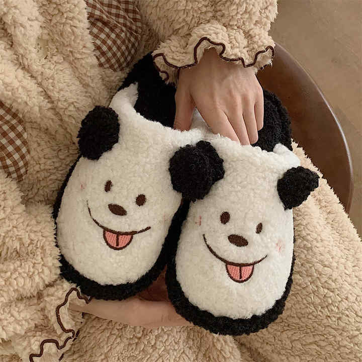 Vous êtes ici: Maison » Des produits » Slippers d'hiver » Pantoufles fantaisie » Pantoufles d'hiver en fourrure pour femmes, chaussures chaudes en coton, joli chien de dessin animé, chambre d'intérieur, diapositives en fourrure pour dames
