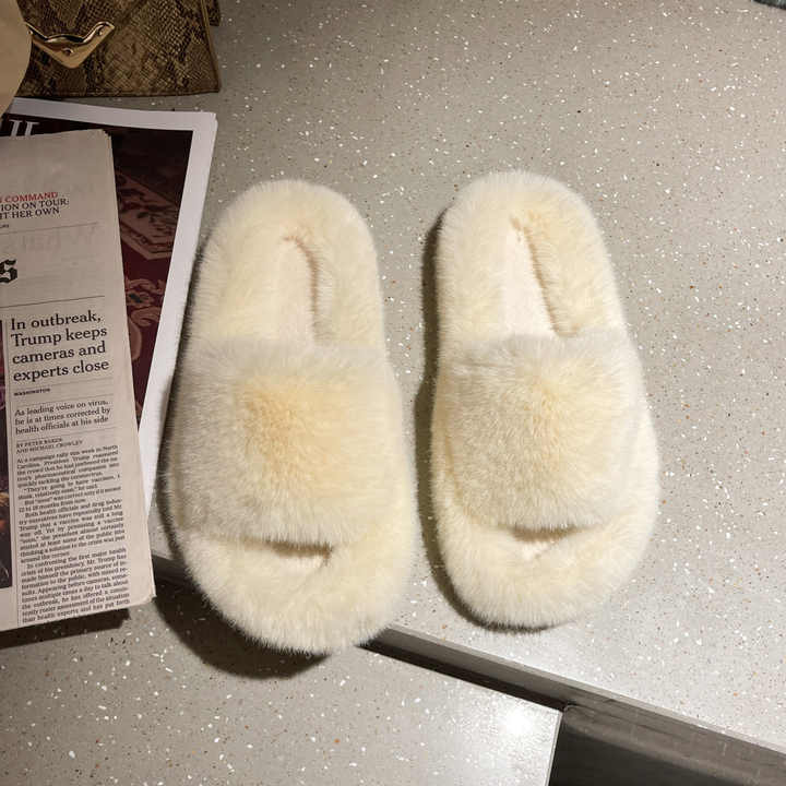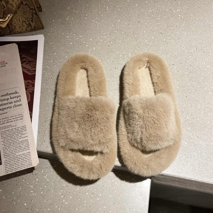 Pantoufles de maison pour femmes, chaussures plates, diapositives en fourrure, peluche douce, coton, intérieur, hiver