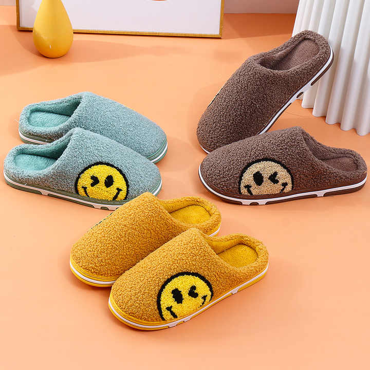 Vous êtes ici: Maison » Des produits » Slippers d'hiver » Slippers de fourrure » Pantoufles en fourrure pour femmes, Mules de sol avec sourire mignon, chaussures plates courtes en peluche polaire pour dames, pantoufles moelleuses d'intérieur