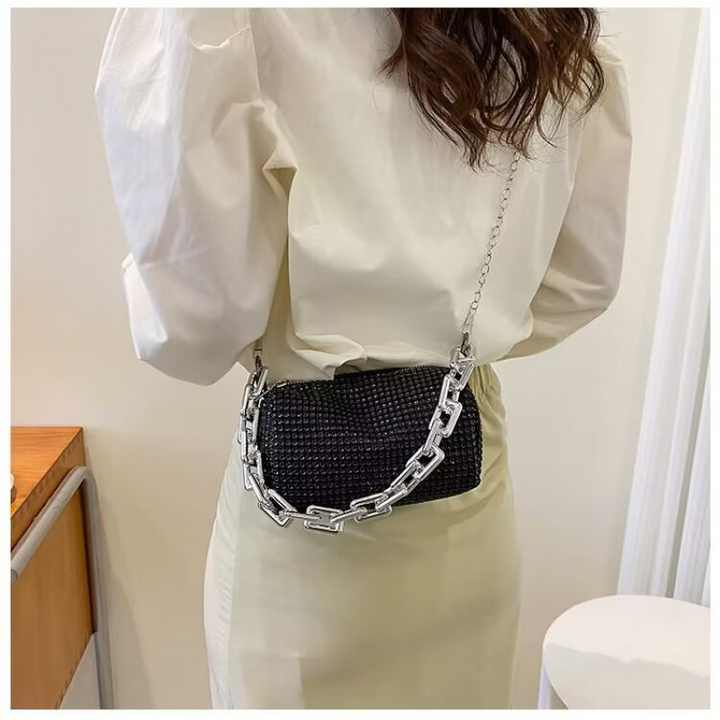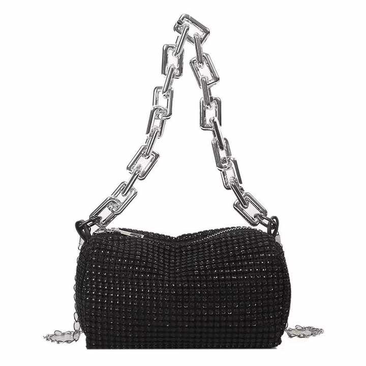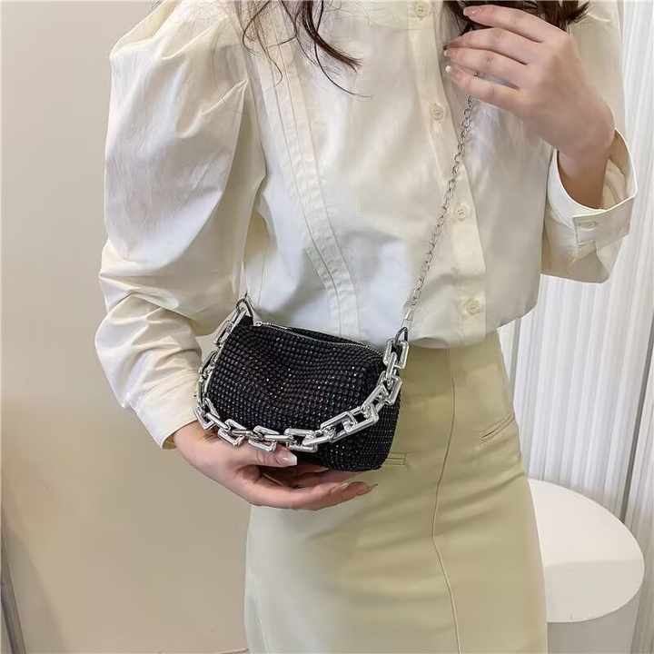 Sac à bandoulière Portable pour femmes, diamants brillants, chaînes métalliques, dîners en PU