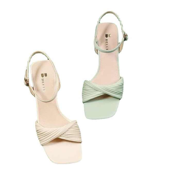 Sandales à talons épais rétro, bout carré, chaussures Rome à bout ouvert, mode, petite robe de soirée fraîche, pantoufles de plage