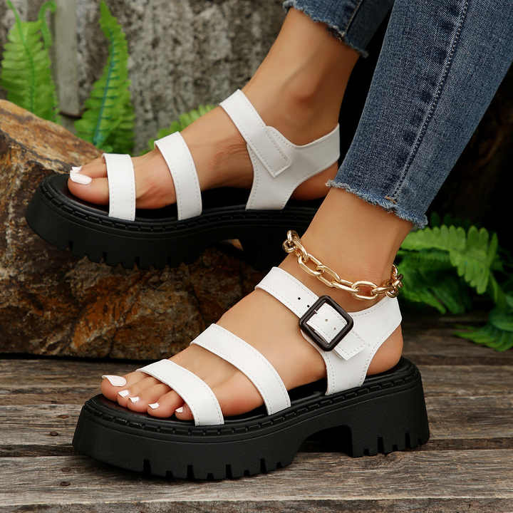 Sandales d'été à bout ouvert pour femmes, chaussures respirantes et confortables, à boucle compensée, chaussures femme