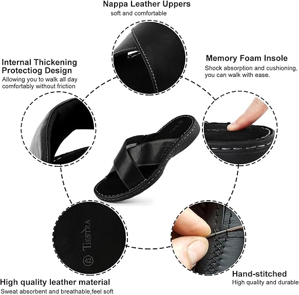 Matériel: supérieur en cuir Nappa, super doux et confortable, cousu à la main, robuste et durable.