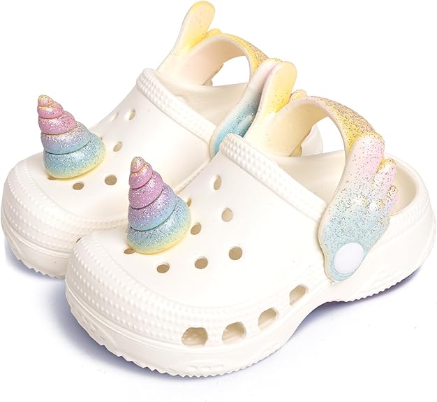 Cartoon Cartoe Unicorn Sandal Clogs - Semelle amortissante en mousse respectueuse de l'environnement pour le confort et la traction à la surface. Léger, résistant aux odeurs, facile à nettoyer avec du savon et de l'eau, à sécher rapidement.